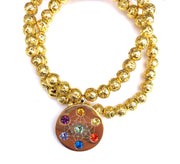 Highest Angel Metatron Gold Charm with Gold Dipped Lava Beads Ladies Bracelet. The ionic plated Metatron charm features the geometric symbol of Metatron, Highest Angel, with Swarovski crystals in the colors of the Chakra.